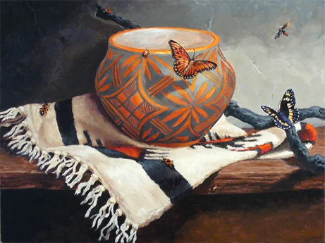 Fine traditional Southwest landscapes and Native American still life / wildlife paintings.